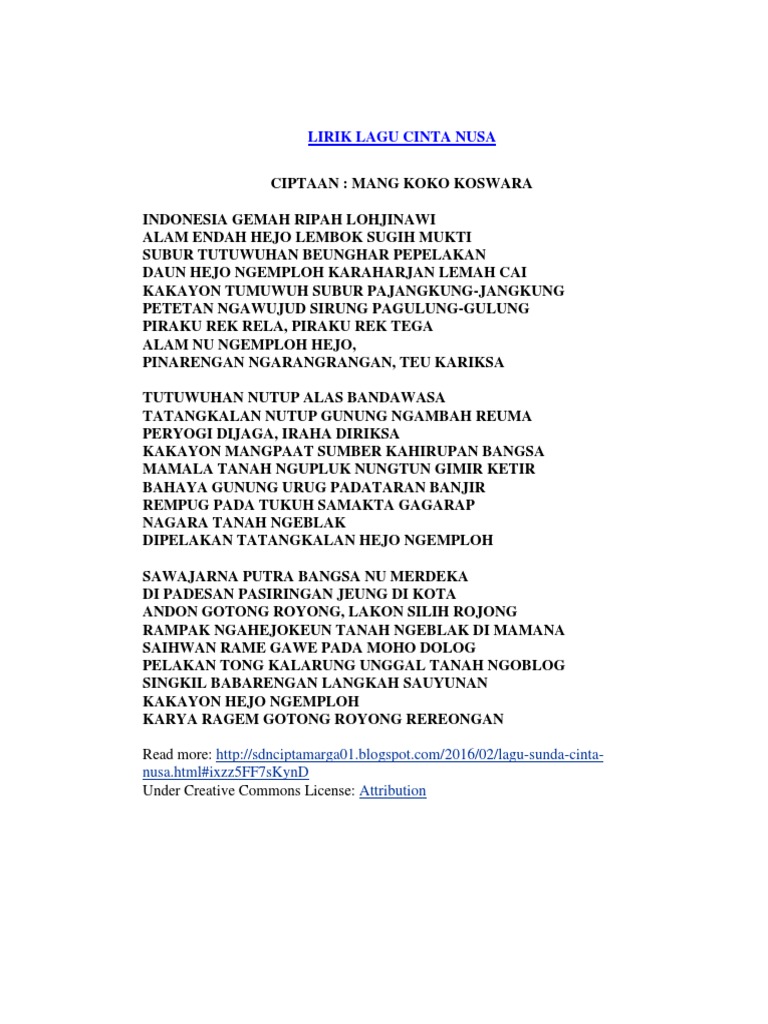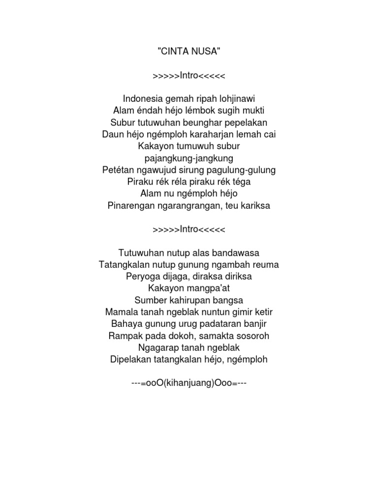 Cinta Nusa Lirik Kawih Sunda Youtube